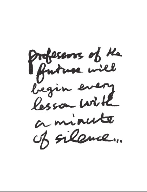 My wife decided that the future is now, and did this with her classes one day; the effect it had on the energy in the room and on the students’ focus for the rest of the period was unmistakable.  Rather than rush headlong into the day’s lesson, she provided her students time to breathe, inflect, and shed the layers of the day.
