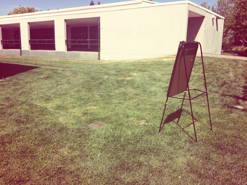 Or because spring is exploding around you and all anyone can do is look out the window (if your room has windows…) then put out an APB to staff to bust out the Pop-Up Classroom. Do you think kids will be more distracted out here than in your room? A humungous part of me says “no.” I’d wager that the shift in environment will wake up a part of their mind that seven months in the too-familiar architecture of their classrooms have put to sleep.