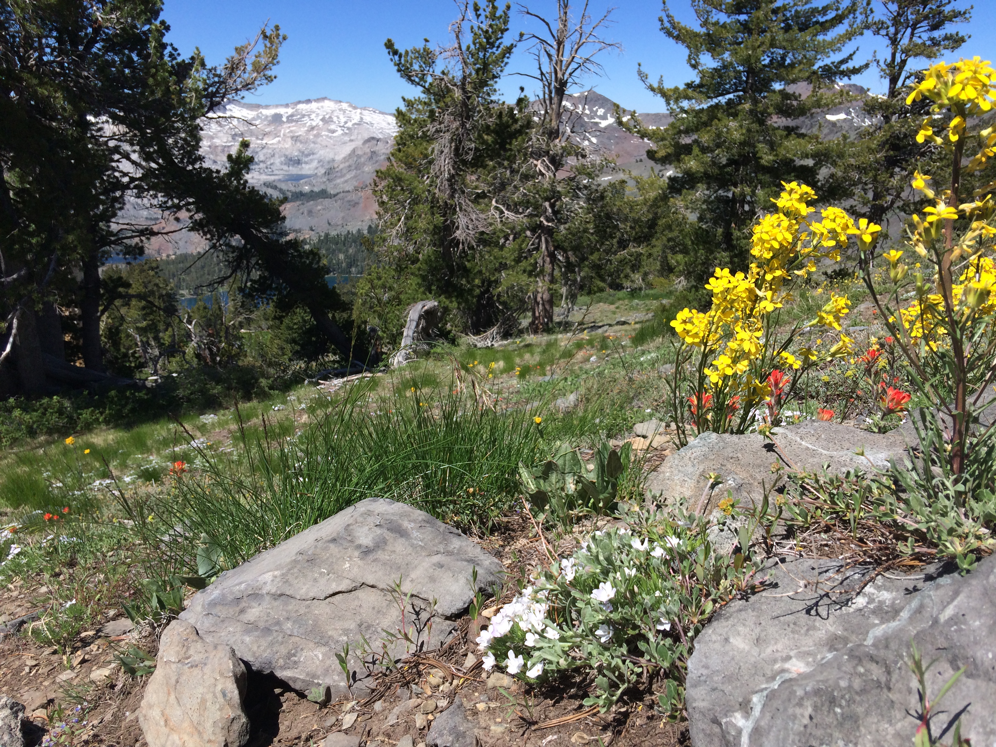 What is it that we seek in the mountains? What is the interest in arriving at a summit? When we begin our trek, we are often able to look up and see our destination, as in the picture below of Mt. Tallac (South Tahoe, CA) – just a shade below 10,000 feet in elevation. At first glance, considering the thousands of vertical feet separating us from our aspired destination can be intimidating; we are so small in comparison! When we think about – and feel – the cumulative effect of the hours (sometimes days or weeks, depending on the mountain) it will take us to reach the summit, a deep heaviness can settle over us; the shadow of impossibility. Regardless of our preparation and fitness, we can lose our sense of the moment in anticipation of the difficulty, pain and discomfort to come.