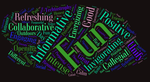 We asked for feedback at the end of the day on a Google Form (Likes, Wonders, Next Steps) and asked everyone to describe the day in three words. Here is the word cloud from the three word prompt: