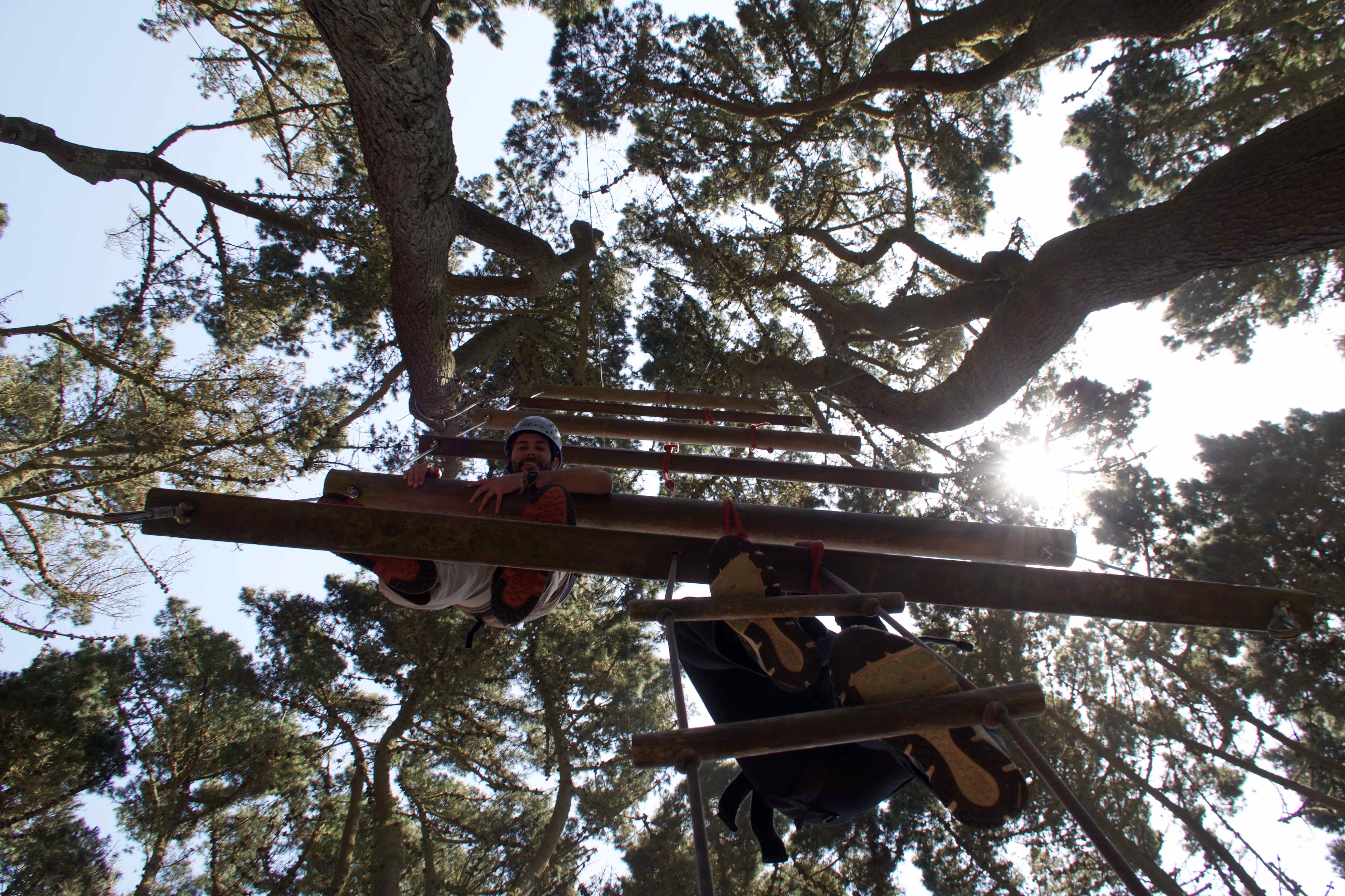 Switching sides on one rope – 20 feet up.