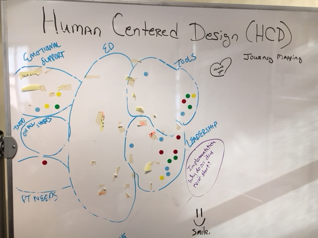 I saw this whiteboard while waiting to get a flu shot – evidence of their last team retreat. In purple: “Implementation – why do our ideas never start?”